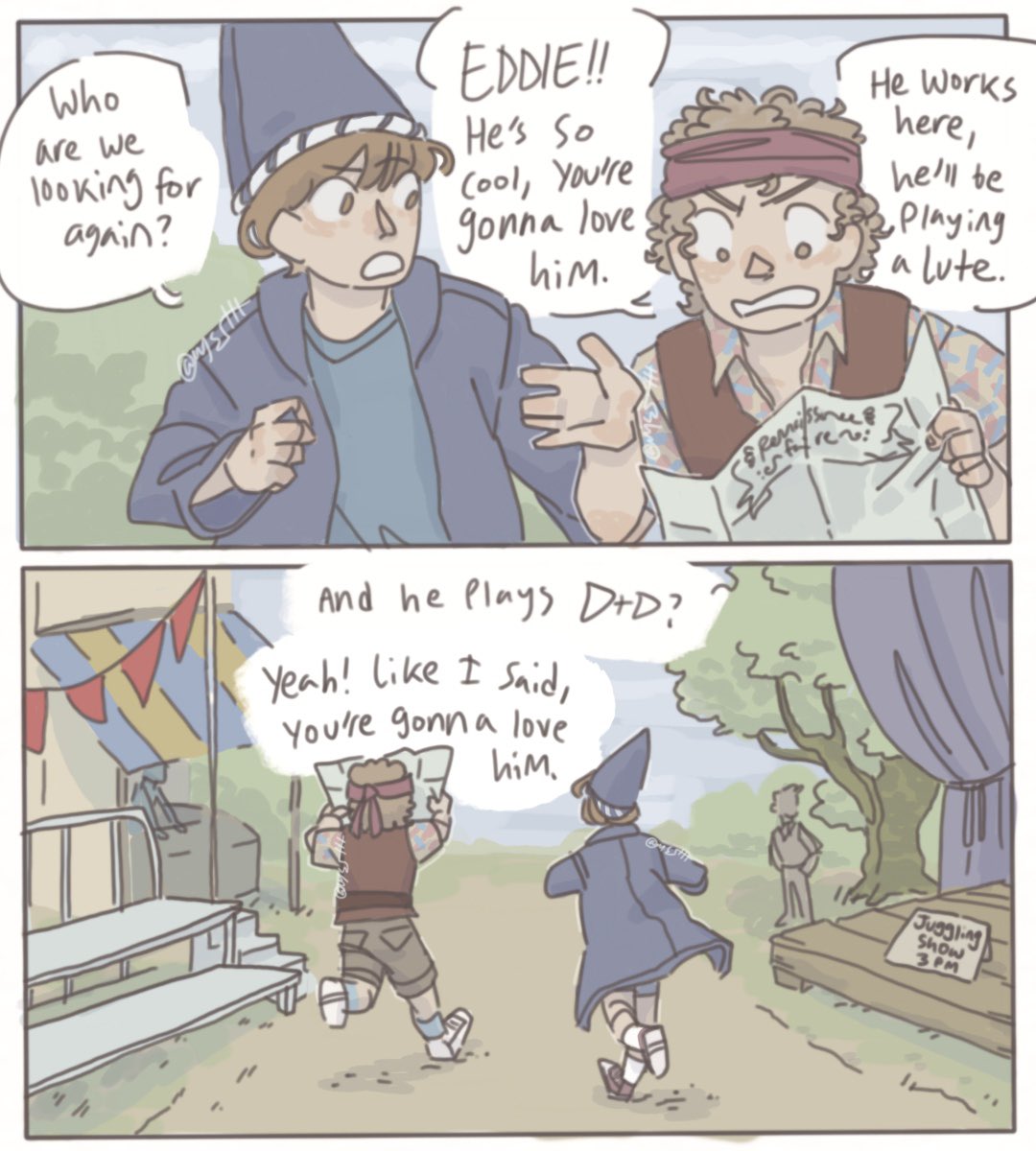 I can’t tell if this makes me wanna laugh or cry. . . Based on that Lilo and Stitch meme~ . . #StrangerThings #EDDIEMUNSON #steveharrington #dustinhenderson