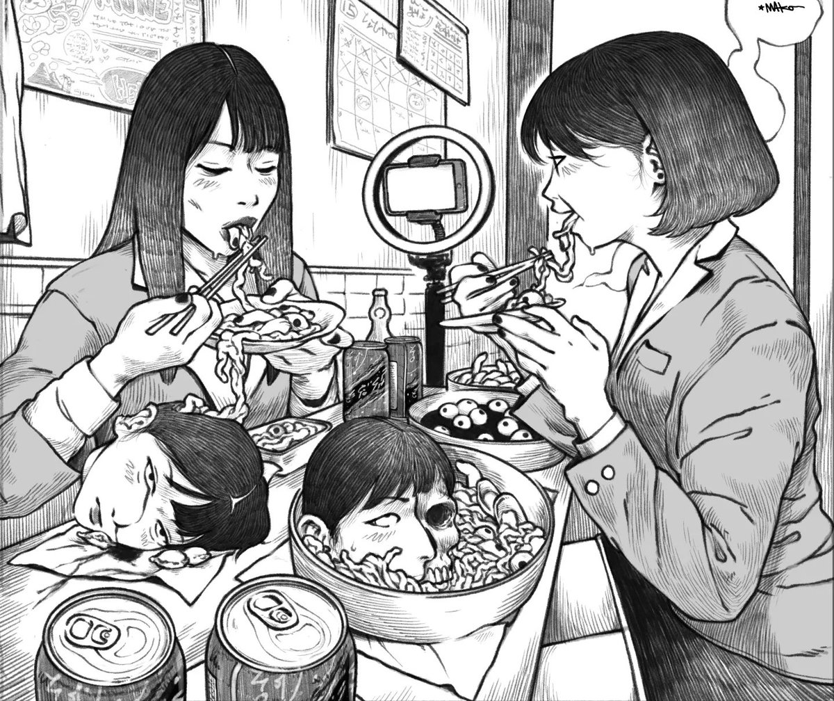 ALL YOU CAN EAT MUKBANG AT THE HEAD-START CAFE!!, (44lbs) OF DELICIOUS NOODLES, MEAT, AND MORE!! FEAT. @ JUNEAPPETITE #art #mukbang #eat #horrorart #artwork #drawing #digitalart #procreate
