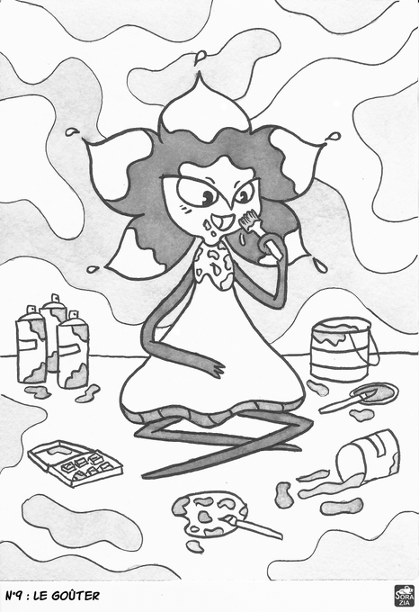 Inktober2022 : N°9 : Le goûter. #chloelolmedeinktober #inktober #inktoberchallenge #inktober2022 #painting #art #drawing #traditionalart #pentel #illustration #ink #painting #eat #watercolor