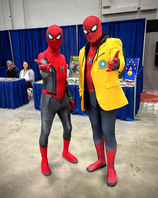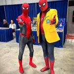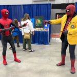 Was pumped to see another #cosplayer being #SpiderMan especially with the same suit, his was amazing (no pun intended) we got to do the #meme at @ECCExpo great shot taken by @mred79 #ECCE #SpiderManAcrossTheSpiderVerse #SpiderVerse #FarFromHome 🤘🏻