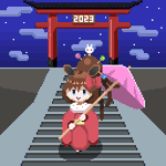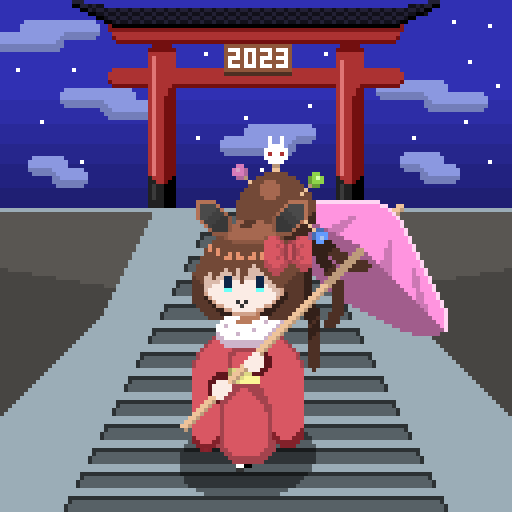 @eeveestrations's OC, Eevee-chan, in New Years attire. Hopefully 2023 will be a promising year for all of us and I hope everyone had a good holiday break. #pixelart #ドット絵 #EEVEEstration