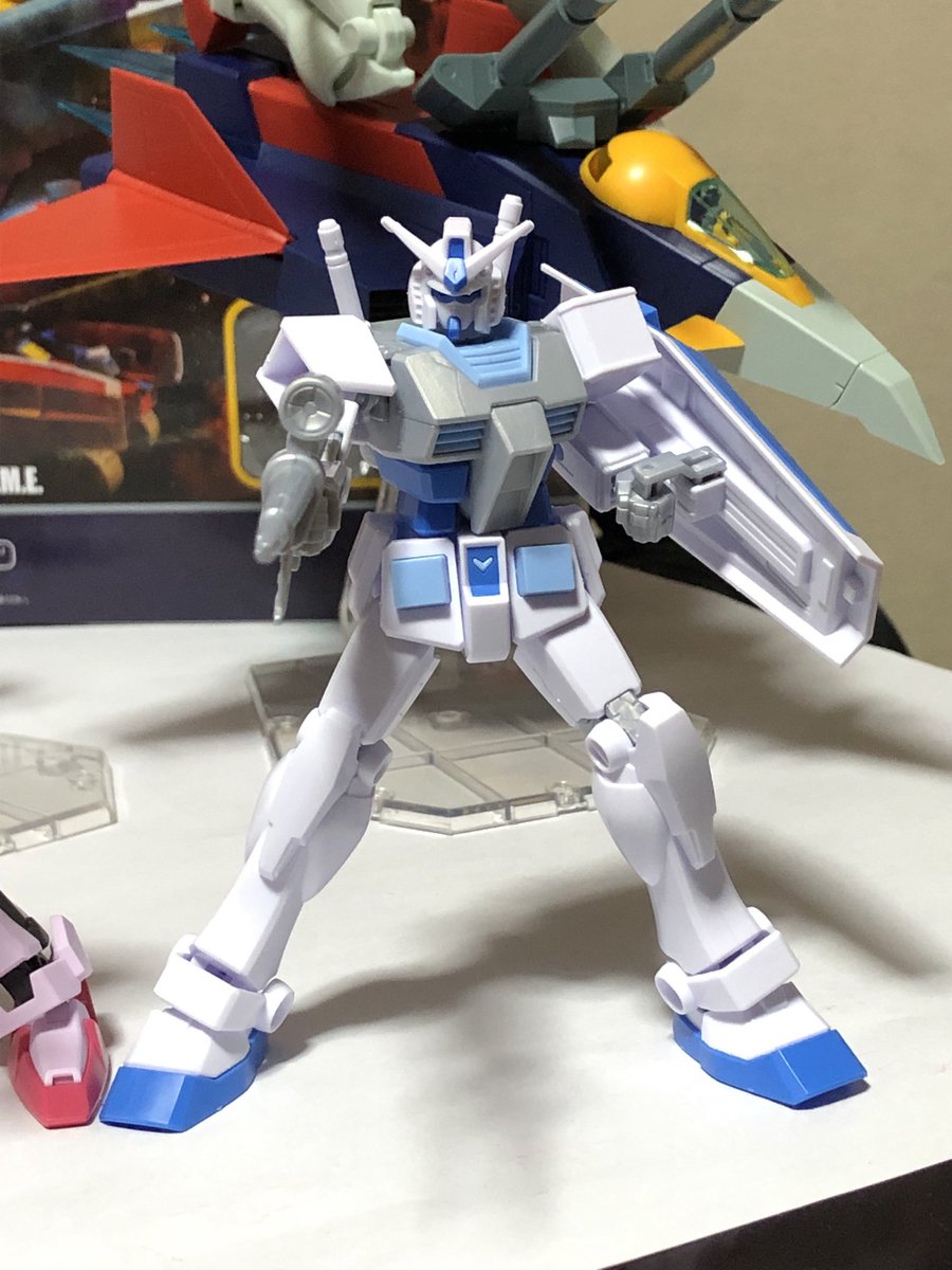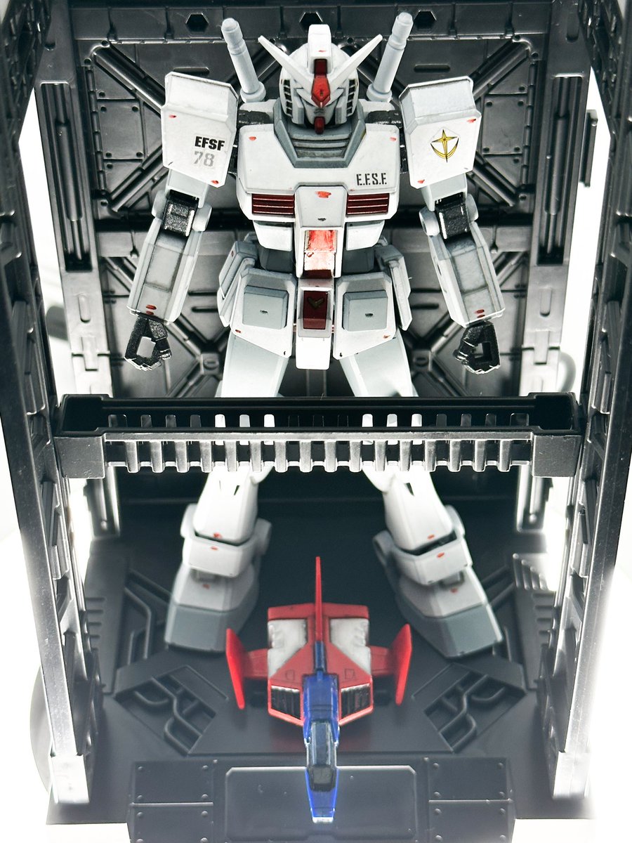 ガンダムの奥にGファイター、さらに遠くにホワイトベースが駐機してると思っただろ? ひと塊りに置いてるんだなぁ、これが! #今朝のガンプラ #ガンプラの画像を貼るとRTされるときいて #ガンプラの画像貼るとRTされると聞いて #EGガンダム #トミカ