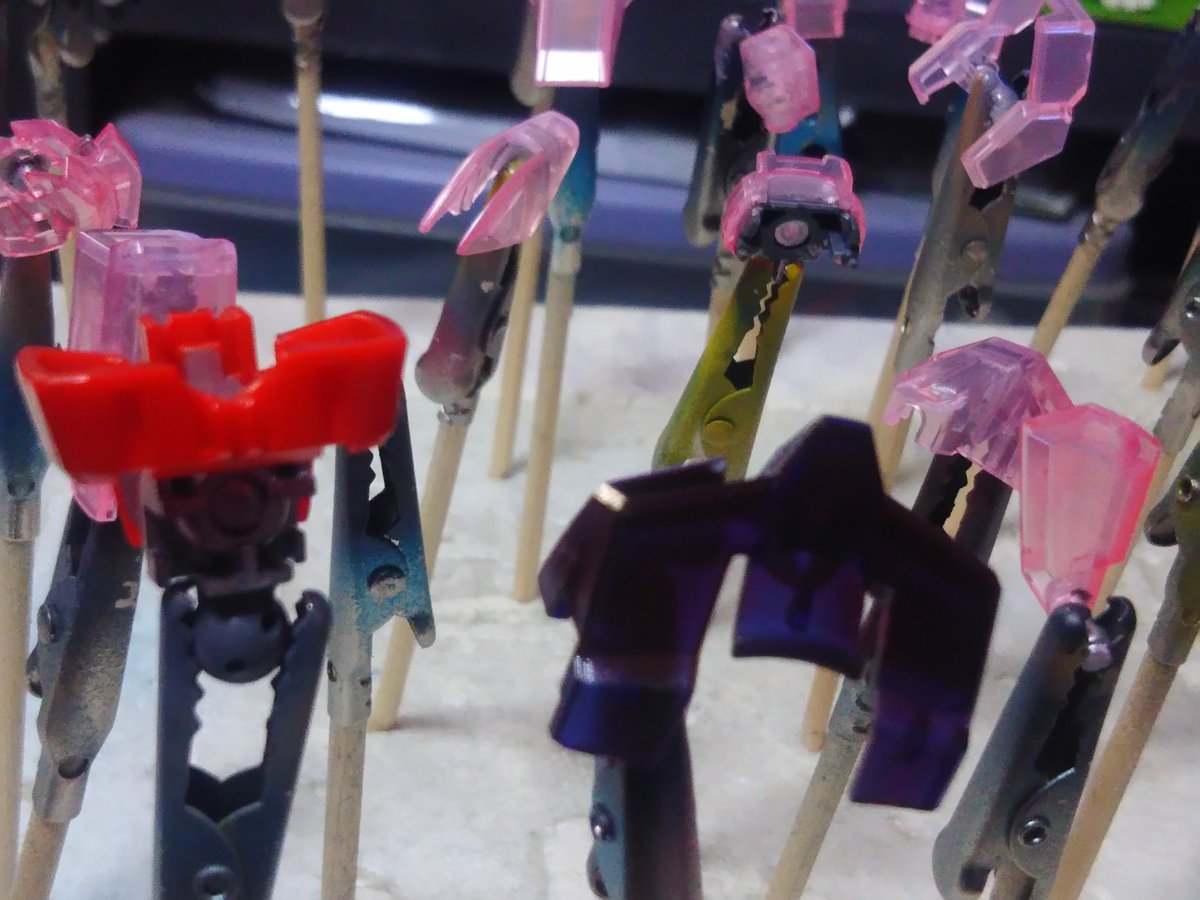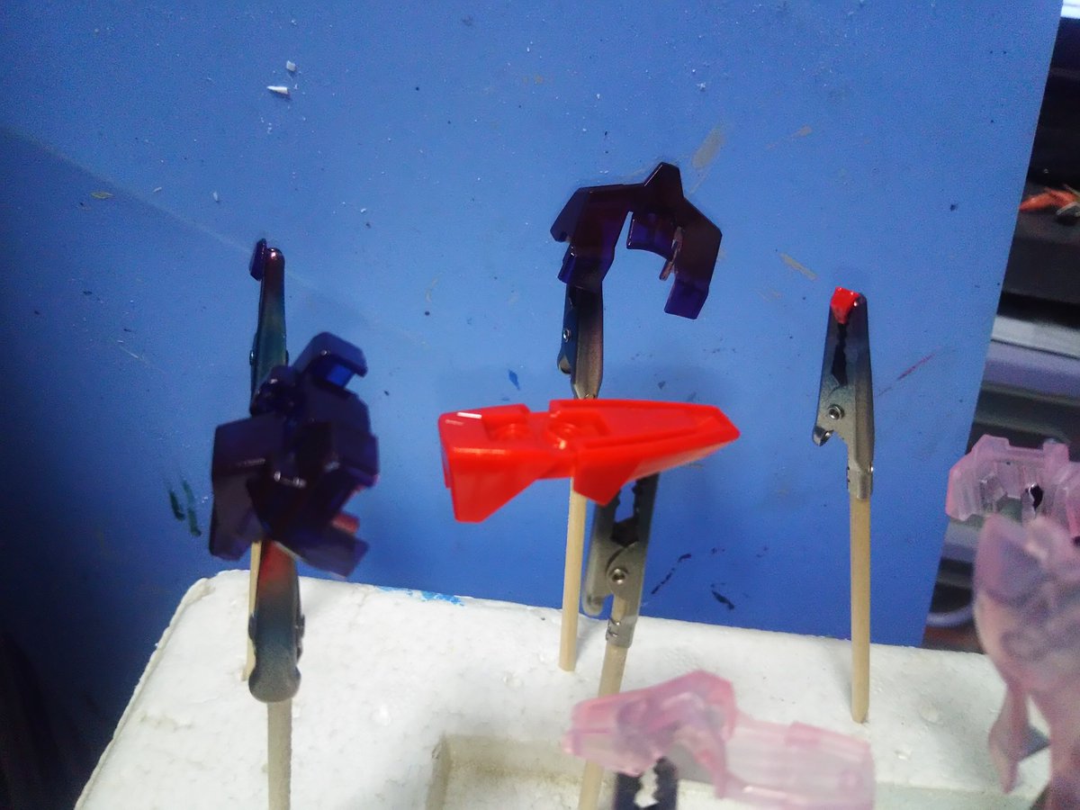 #gundam #gunpla #ガンダム好きと繋がりたい #ガンプラ #EGストライクルージュ #ガンプラの画像を貼るとRTされると聞いて 1番くじのEGストライク(クリア)を無理やりストライクルージュに塗ってます。 青いパーツはクリアレッド濃いめで厚塗り。 白い部分は薄めでさっと塗りました。