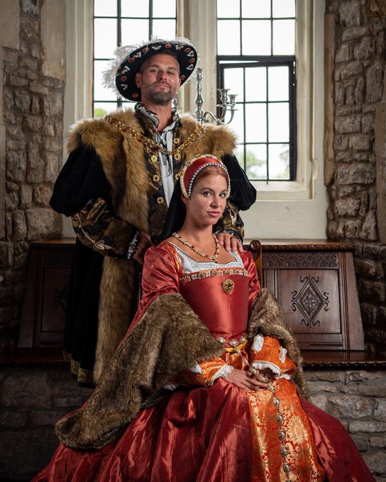 Welcome your new king and queen back from Thornbury Castle! 🤴👸 Also, I touched that castle. Bucket list item ✅. 😌 📍: @thornburycastl 📸: Tudor Royalty Experoence (except for the afternoon tea photos 😅) #UK #ThornburyCastle #Tudor #cosplay #England #Honeymoon