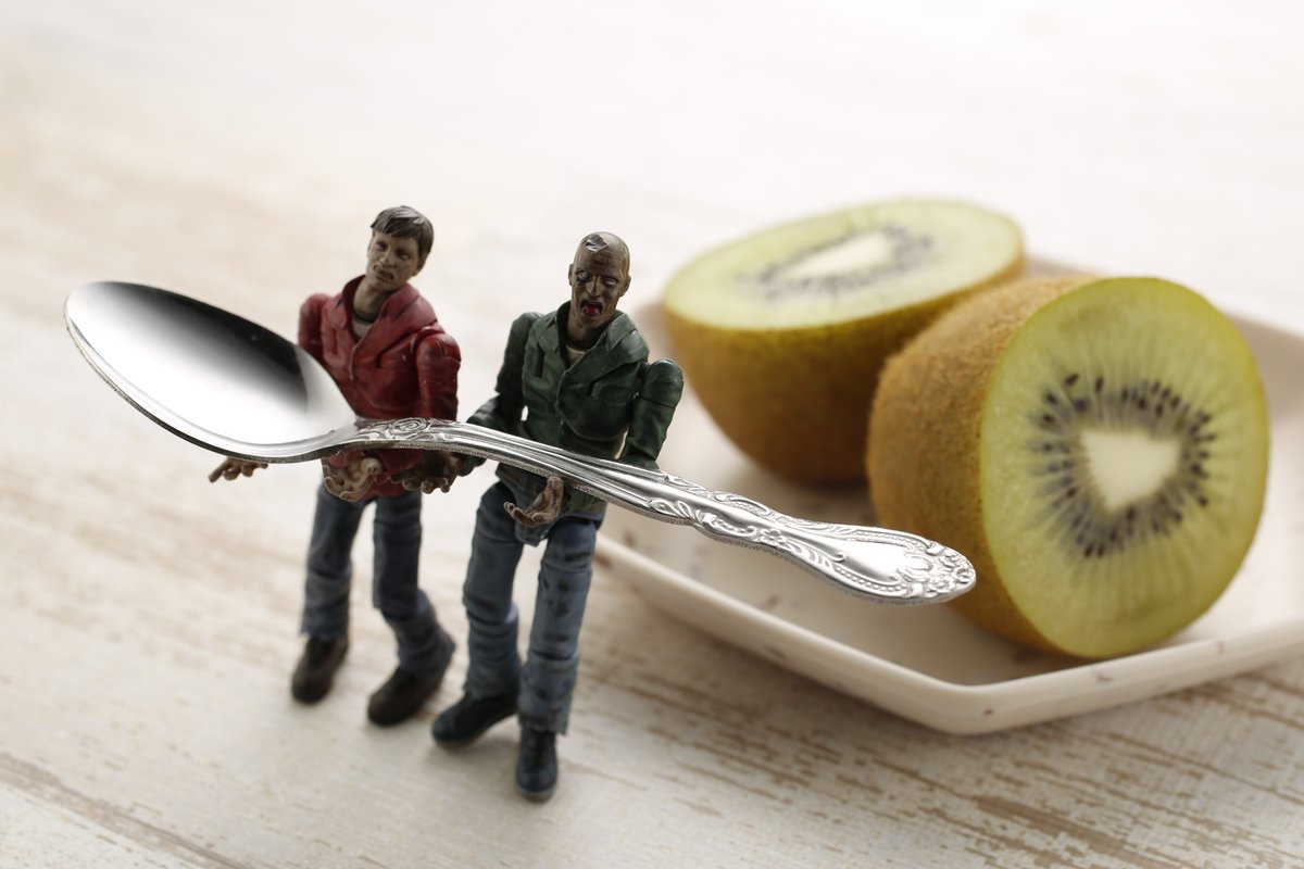 【今月発売!】#EndofHeroesゾンビ・DIEアリー今週のカット!第三回「オマエ、キウイ、食ウ」手乗りゾンビのいる生活風景。いかがですか? アゴニーとバイターは今月下旬発売予定です! #EOH20XX