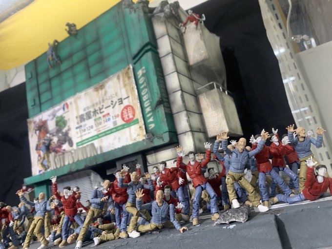 【好評発売中】#EndofHeroesゾンビ・DIEアリー今週のカット!番外編「死の海嘯」 現在開催中の #静岡ホビーショー にて、まるで映画のワンシーンを100体のゾンビでジオラマ再現しました! #EOH20XX