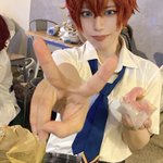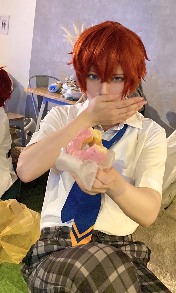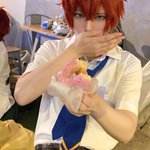 #ES5thAnniv_0716 コスプレ アフターパーティーは制服を着ていたよ! 藍良たちが踊っているのを近くで見れて嬉しかった! 巽先輩が写真を撮ってくれた 次はもっと上手く食べるよ🍩 巽先輩👉@nana_cospom