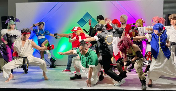 EVO Japan 2日目 CAPCOM VS SNK(⁉︎) 会場に居た格ゲーレイヤーさんにご協力頂き、集合で対峙しました🔥 皆様の格ゲー愛溢れるコスプレ、眼福でした✨お疲れ様でした〜 #EVOJapan2023 #EVOJ2023格ゲーコス