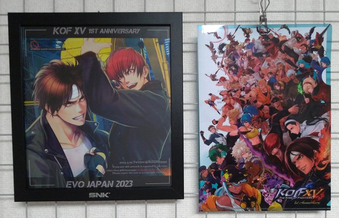 SNKのご厚意で、#EVOJapan2023 で展示頂いた絵を額装ごと贈呈頂きました~! 内心欲しかったけどさすがに図々しすぎると自重してたので、まるで意を汲んでくださったかのようなお心遣いに大感激です😭 改めて、この度はありがとうございました! #KOFXVイラストコンテスト twitter.com/Rei00029992/st…