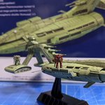 EXモデルのムサイが完成! パーツ数はHG等に比べるとかなり少ないが、1/1700ということで奥は深い😂 娘が施したウェザリングに同スケールのザクを配置して飾って置こう😄 #ガンプラ #ガンプラ女子 #ガンプラの画像貼るとRTされると聞いて #ガンプラ好きと繋がりたい #EXモデル