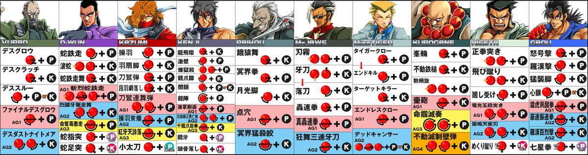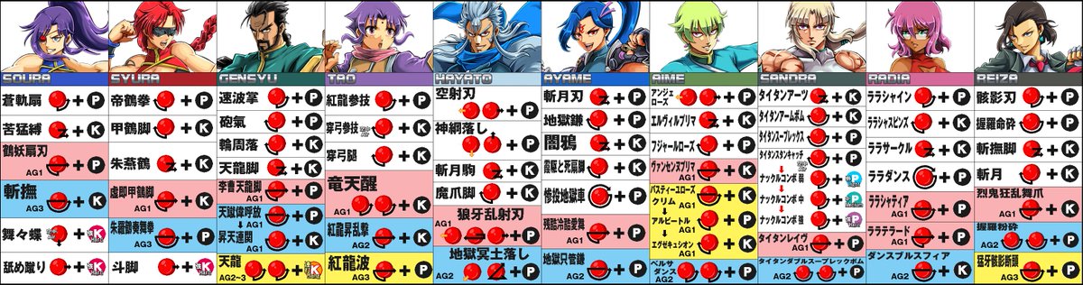 『アクセルシティ2』5月10日のロケテに向けて全40キャラのコマンド表を公開。技で選ぶかキャラで選ぶか?どっちにしても頭に入っていて悪い事はない! まだ見ぬライバルに差をつけろッ! #AXELCITY2 #アクセルシティ2 #秋葉原Hey #中野TRF #EXA基板 #exaarcadia