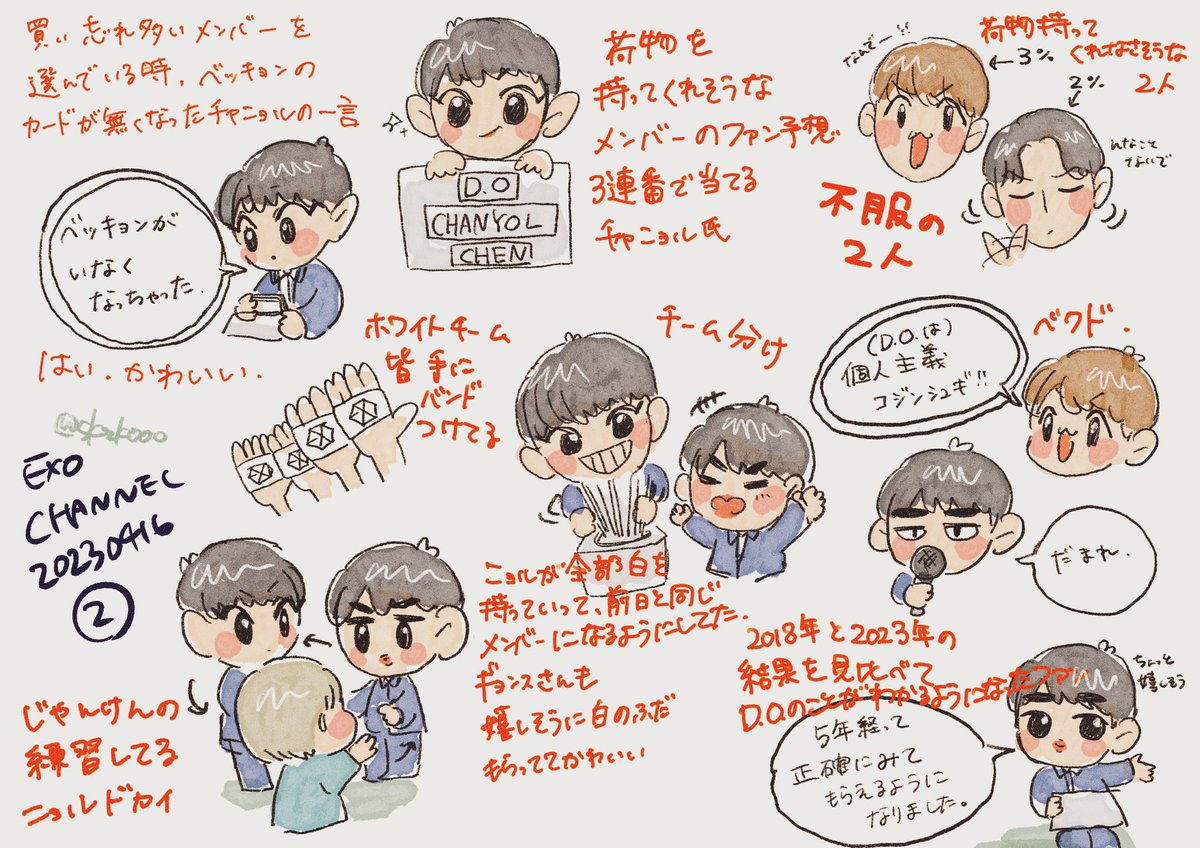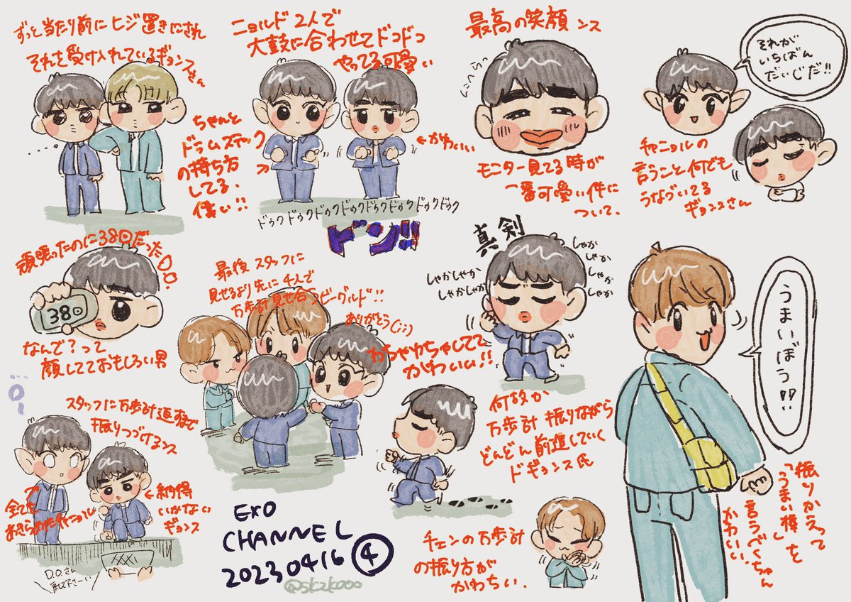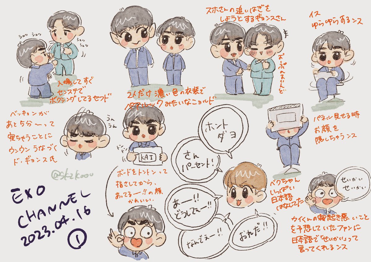今更16日のファンミーティングメモが完成!!ニョルドとビーグルドが多くて描きたいこと山程な上に色々あって時間かかったけど終わったー\( ˆoˆ )/ 円盤化された時に映像として残りますように…EXOchannel 230416 #EXO_FANMEETING_in_JAPAN #EXOCHANNEL_THEBEST