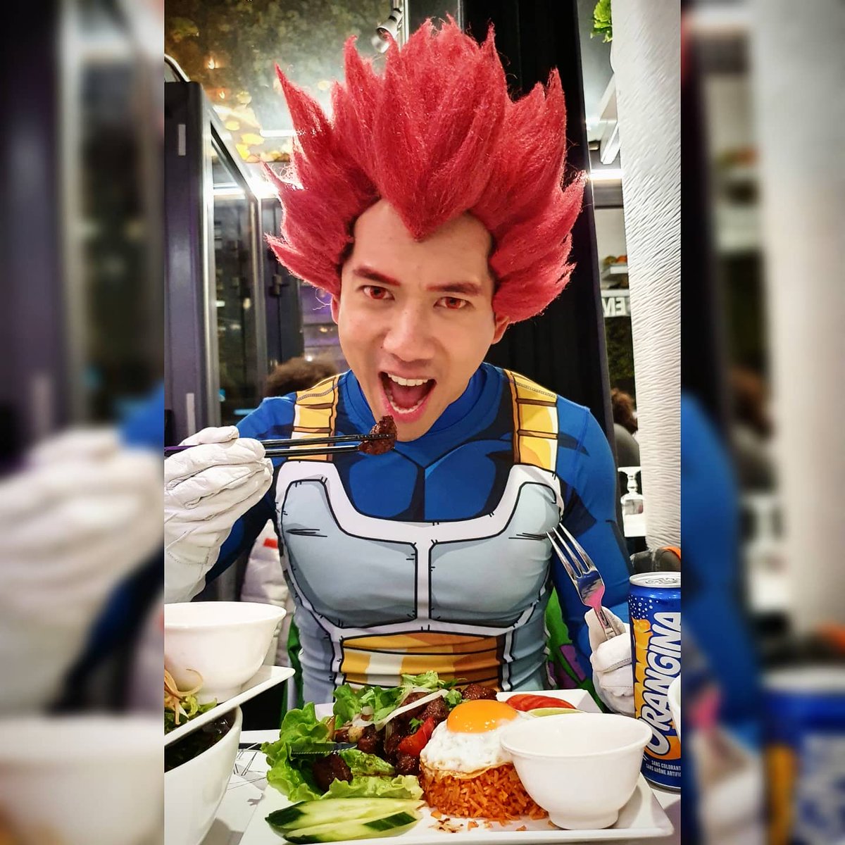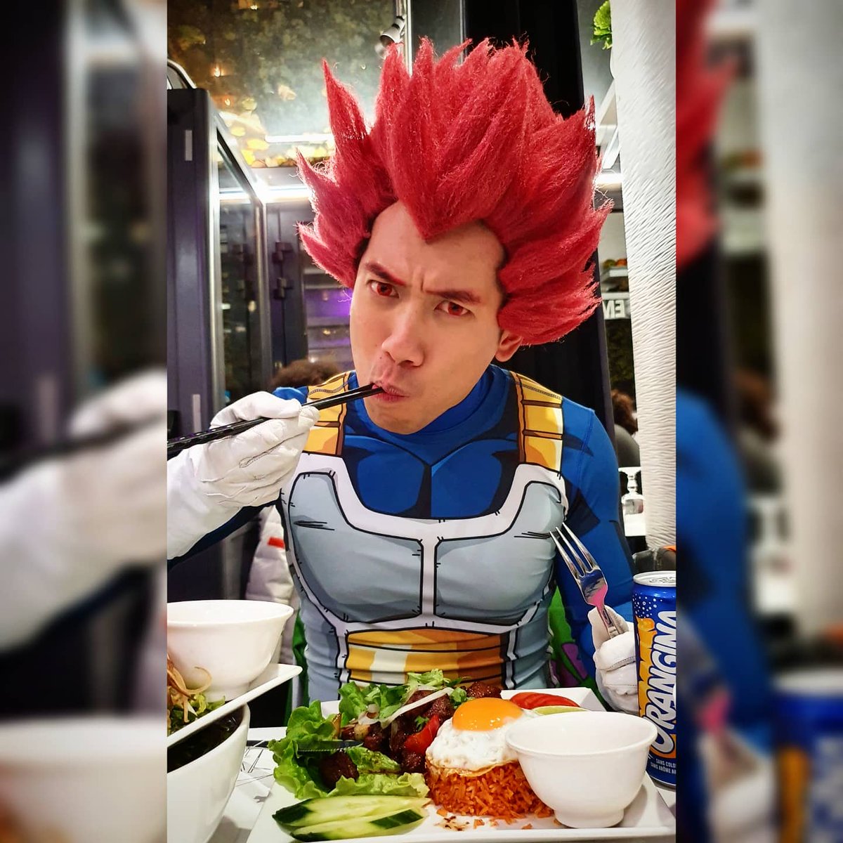 Eating like a Saiyan God ! 🍜🍛🥣🔥 📷 Photo by my bro @aanthony_m 💯 👕 Costume by @justsaiyan_gear Vegeta 2k18 Armour 🧵 Customized wig by @ezcosplay #vegeta #vegetacosplay #vegetaactor #vegetacult #tanwin #realtanwin #dragonballliveaction #vizshare #justsaiyangear #ezcosplay