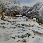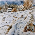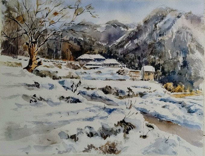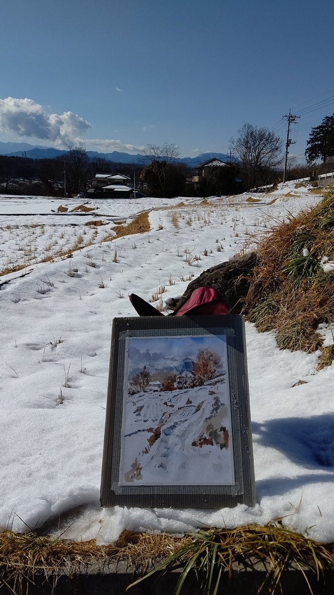 昨日の溶け始めてゆく雪です。照り返しが眩しかった。 #野外スケッチ #透明水彩画 #水彩画 #風景画 #雪 #冬 #早春 #なごりの雪 #写生 #秩父 #横瀬町 #寺坂棚田 #outdoorsketch #watercolour #watercolor #sketch #snow #earlyspring #winter #chicjibu #riceterrace #landscapepainting #aqurelle