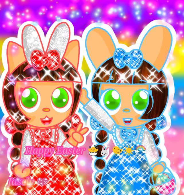 Happy Easter from Mimi and Nyami!🐤🌈🐣🐰☀️ #PopnMusic #Popn_Art #ポップンミュージック #ポップン #Popn #Konami #BEMANI #HappyEaster #Easter2023 #EasterSunday #ArtistOnTwitter