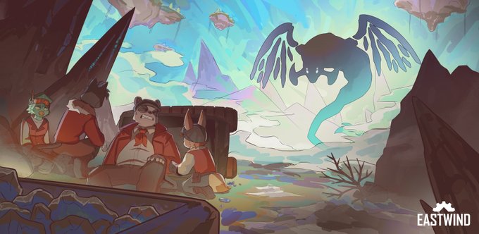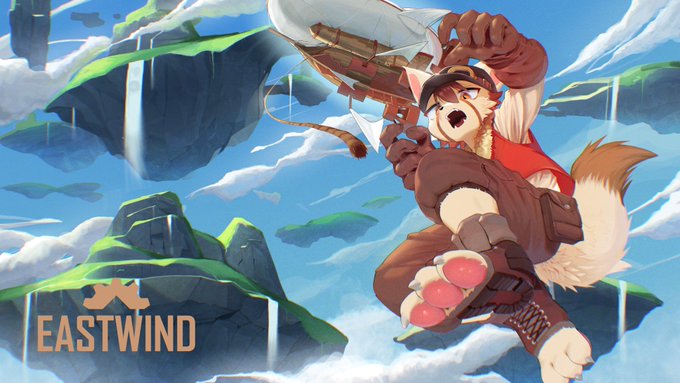 What's below the floating islands? Poster art of Eastwind's Campaign mode #Eastwind | #furry | #furryart | #indiegame | #steampunk | #furryartwork