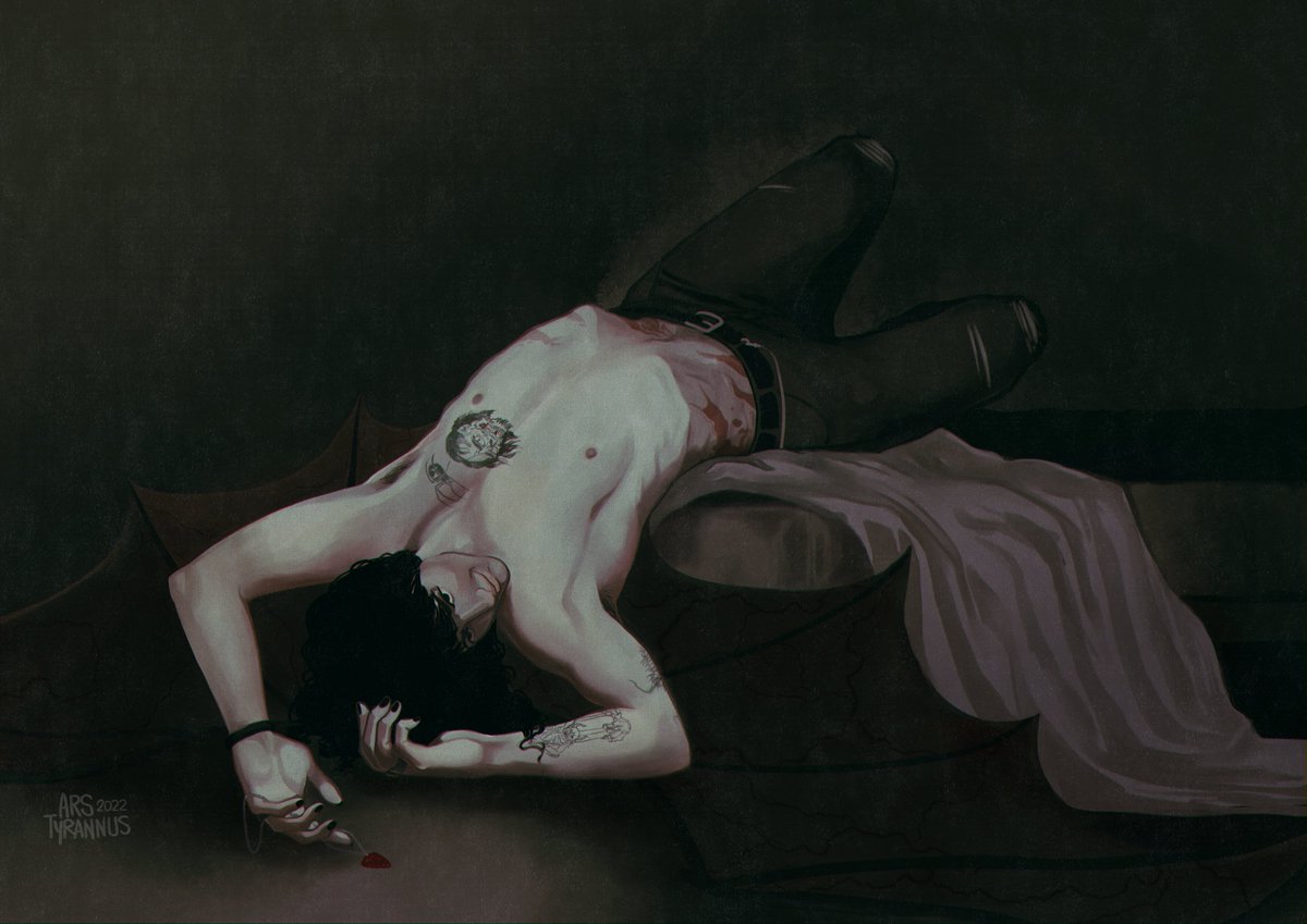Eddie reborn as Kas Based on one of Roberto Ferri's paintings of Lucifer (I cannot find the title for this particular one!) #eddiemunson #eddiemunsonfanart