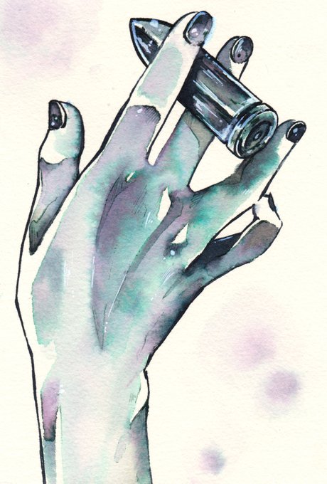 #ゴールデンウィークSNS展覧会2022 万年筆用インクを1~3色程用いて、手をメインにした絵を時々描いています。 初めて買った瓶は #色彩雫 の『霧雨』。他お気に入りは #Edelstein、#HERBIN、#カラーバーインク 等々… それぞれに違う濃淡や滲み方、遊色に驚きがあり、どのインクも大好きです #インク沼