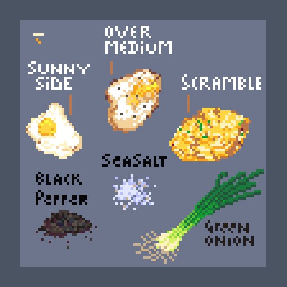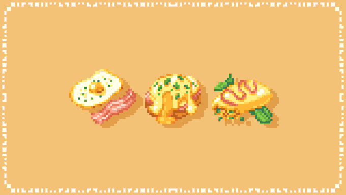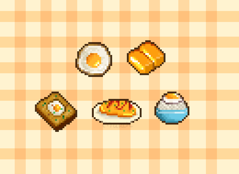 Some of my favorite preparations of eggs for #pixel_dailies c: @Pixel_Dailies #EggRecipes #pixelart #ドット絵 #aseprite