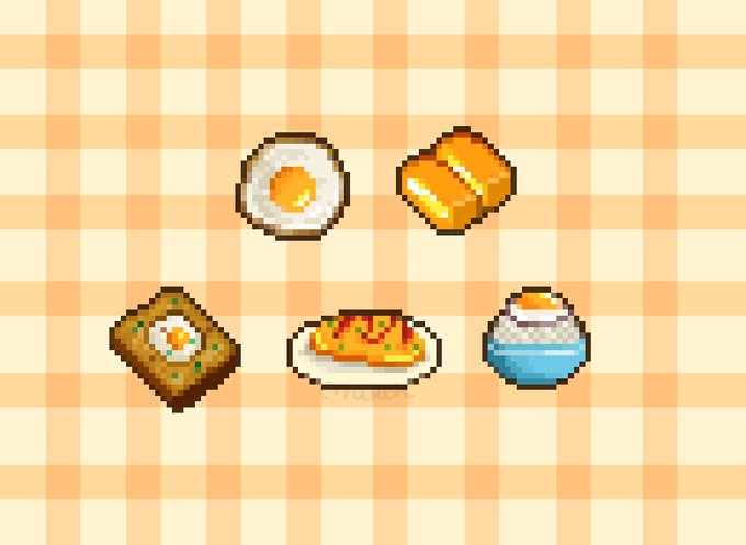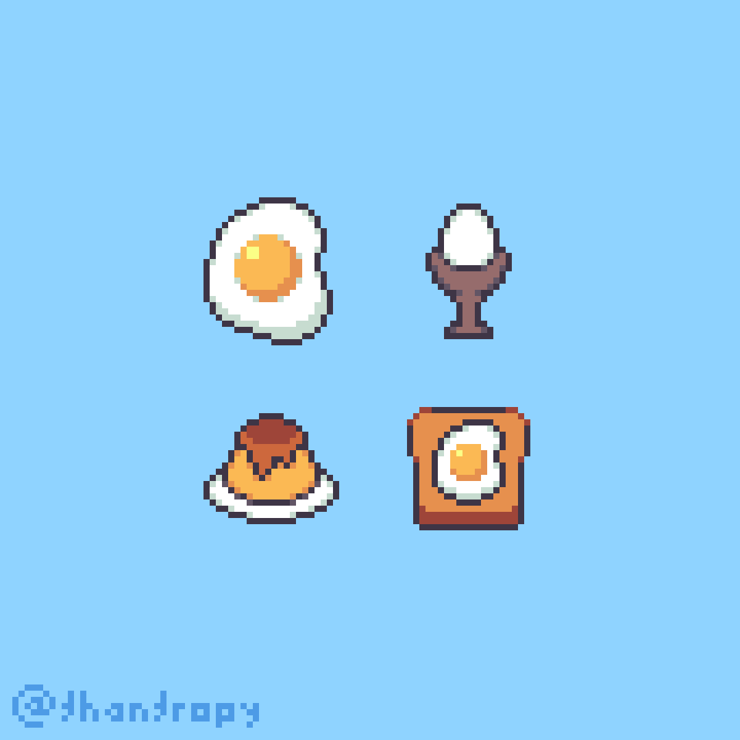 For Today, I made a delicious #Set of #EggRecipes X3! Process video in the Thread! #PixelArt #ドット絵 @PyxelEdit #pixel_dailies @Pixel_Dailies