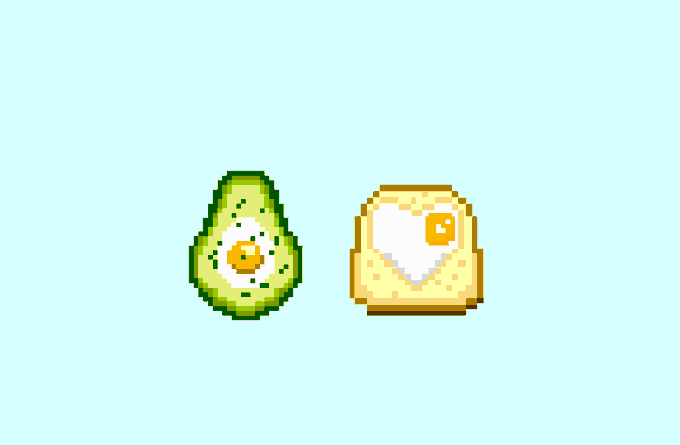 Avocado baked egg or egg toast? For a #Set of #EggRecipes @Pixel_Dailies #pixel_dailies #pixelart #ドット絵