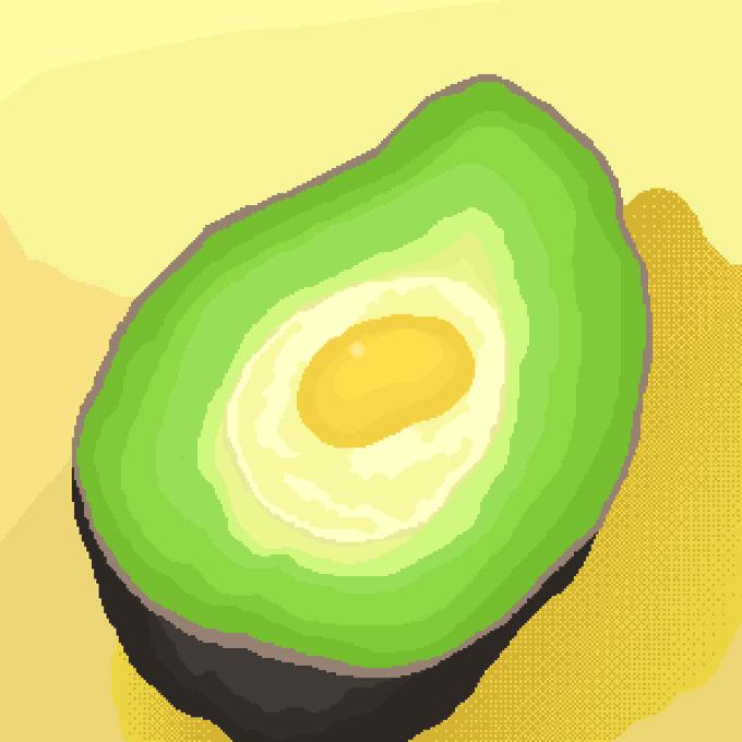 Avoeggo (the process of stuffing an avocado with an egg.) #EggRecipes @Pixel_Dailies #pixel_dailies #pixelart #pixelartist #ドット絵 #aseprite #indiedev #indiegame