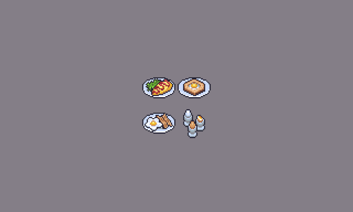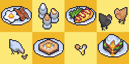 #pixelart Collab on the @gather_town team between @SazdxHikari and I for @Pixel_Dailies #pixel_dailies, a #set of #eggrecipes at 32px or smaller. Perfect prompt and constraints for fitting the Gather style too, we couldn't resist!