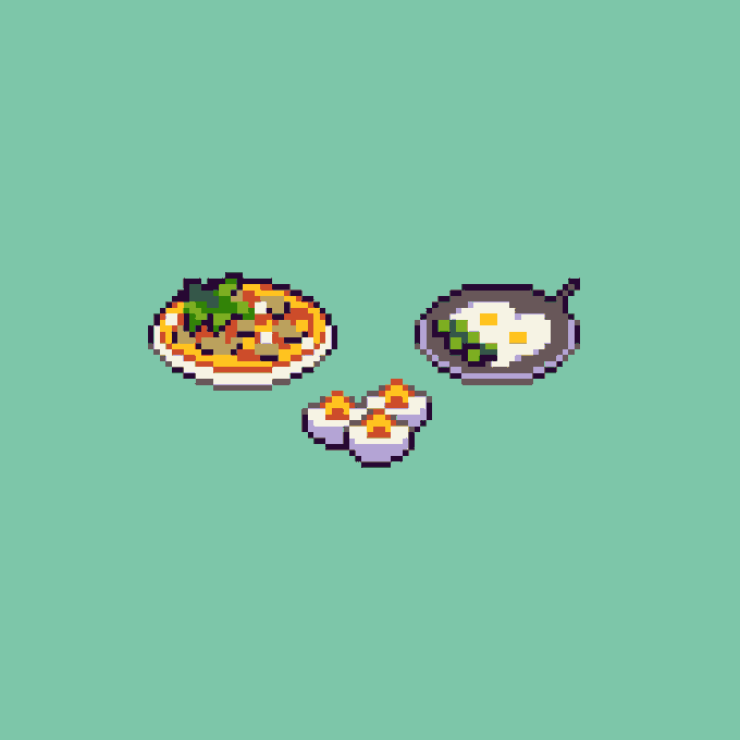 A #set of #EggRecipes that my fellow Indonesian mutuals should've known. @Pixel_Dailies #pixel_dailies #pixelart #ドット絵 #aseprite