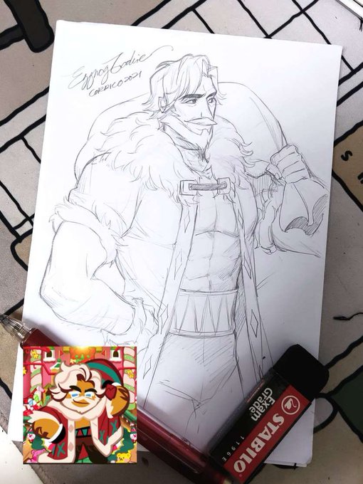 😔✌✨ He can sit on santa´s lap anytime he wants. // I see this as ghost fault. #cookierunfanart #almondcookie #cookierun #eggnogcookie #eggmond