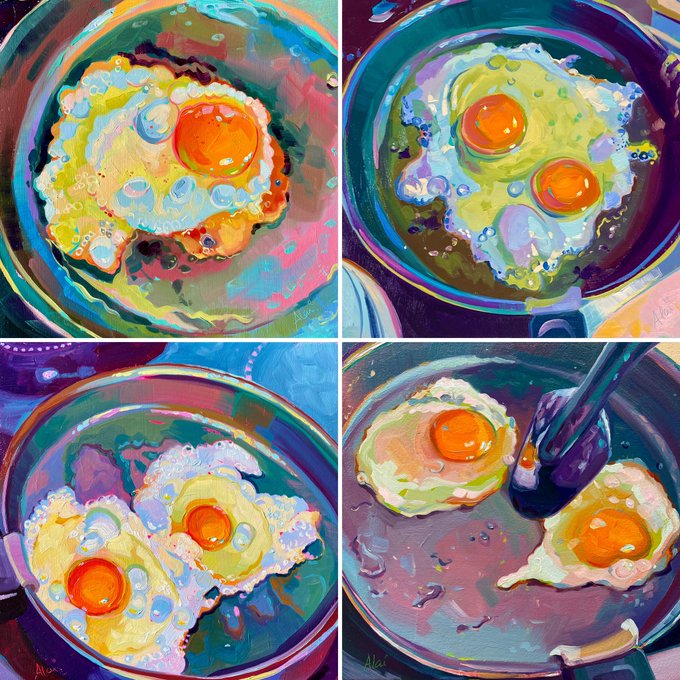 Frying eggs II 🍳 painting on fluorescent bases gives you the most colorful results! 🌈 #oilpainting #painting #eggs