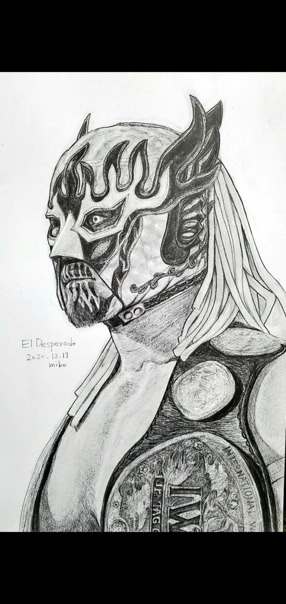 おはようございます☀️😃 以前描いた白デスペさんです(taigaさんのお写真を描かせて頂きました)。 実はデスペさんの鉛筆画は後にも先にもこれ一枚っきり。 これは白マスクだけど、黒マスクでも独特の布の光沢を描くのは難しくて💦。 来年またチャレンジしようかな~、悩む🤔。 #過去絵 #ElDesperado