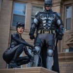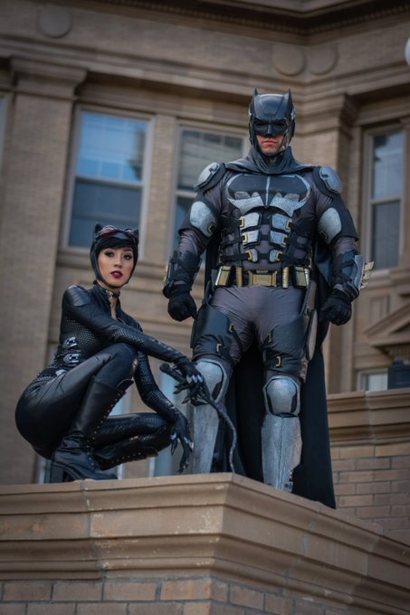 Happy Batman Day! 🖤🦇 Me and my bestie @Iamham_7 posing in front of El Paso High School! Taken by our wonderful friend @kraftedwerx! 📸 🐈⬛Catsuit: InDisguiseDesigns #batmanday #batman #catwoman #cosplay #dccomics #dcuniverse #elpaso