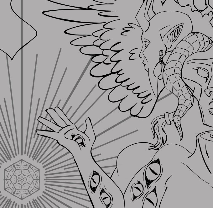 Doing some tests with smoother lineart to see if i like it, still unsure! Doing it without line variation because i still suck ass lmao ------------------------------------------------ #Vtuber #ENVtuber #art #ArtistOnTwitter #dnd #dndart #worldbuilding #characterdesign #Eldritch
