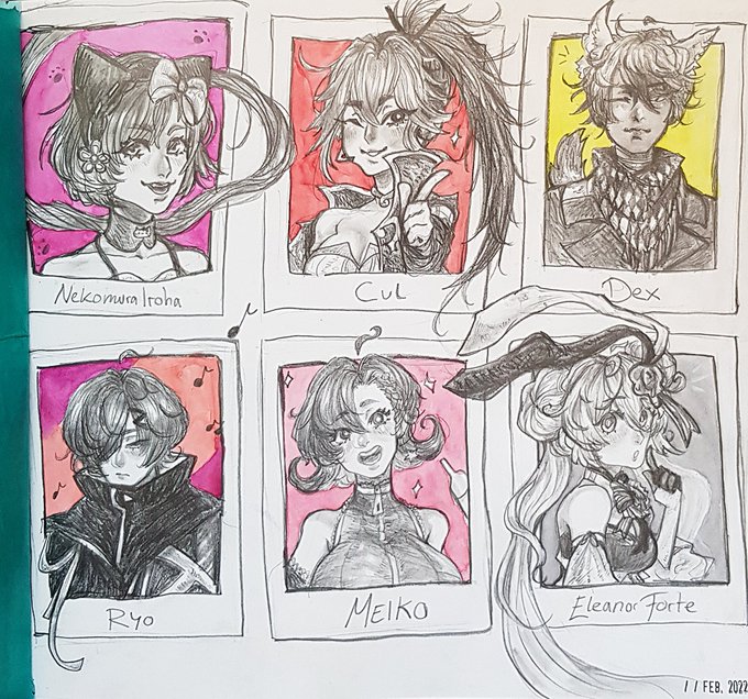 Drew the requests in my sketchbook ✨ #合成音声キャラを描こう #猫村いろは #NekomuraIroha #CUL #DEX #SynthV_Ryo #MEIKO #EleanorForte #VOCALOID #SynthV