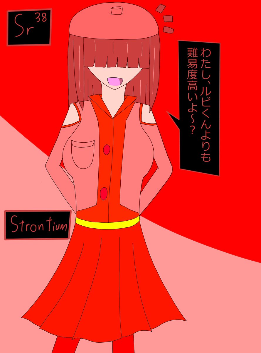 【元素擬人化】Sr 38「ストロンチウム」 花火などに使われる元素 アルカリ土類金属の一つ 陽気で元気いっぱいのメカクレ女子 ルビジウムとは幼なじみの仲 #イラスト #元素擬人化 #ElementsLife
