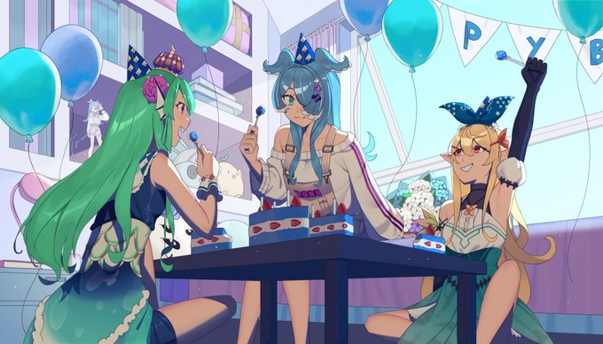 happy birthday to our beloved solar sky dragon! 🎂💙 (its still 16 somewhere) #EliraGotCake2022 #絵リーラ #pendorART #Palouette #DrawMillie