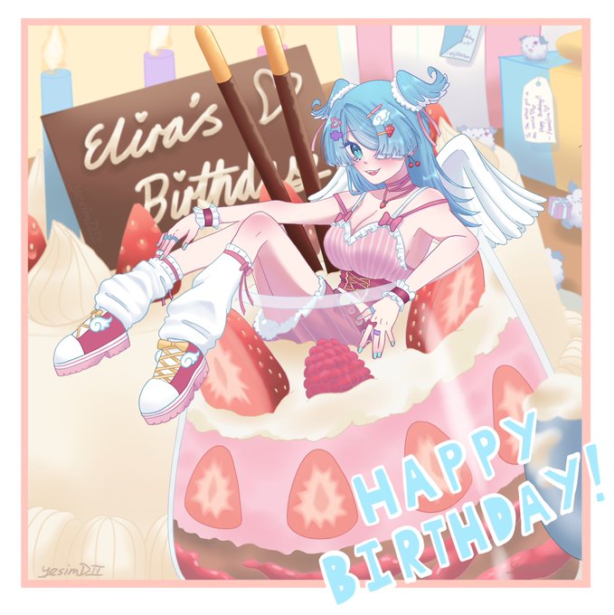 Day 16: An angel fell into your parfait! Happy Birthday to cutest; Elira Pendora!! 💙🎂🎉 #絵リーラ #pendorART #Elitober #EliraGotCake2022