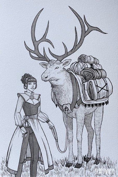 ~ Merchant ~ Day 6 of Inktober and Drawtober, moving into the second drawtober prompt with Midnight Delivery✨ #drawtobermidnightdelivery #elk #witchesandfamiliars #inktober2022