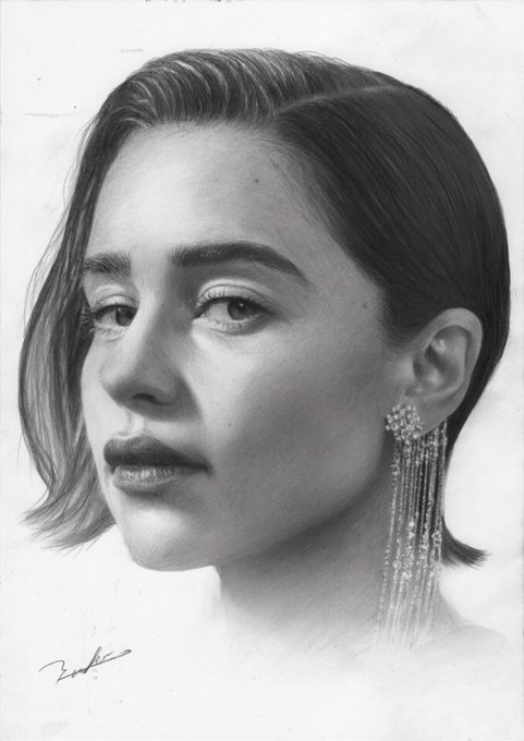 #ゲームオブスローンズ で有名なイギリスの女優 #エミリアクラーク さんを鉛筆で描いてみました✏️ 👀 ピアス やっぱりムズかったです(T^T) #鉛筆画 #まきむらゆうこ #EmiliaClarke #Pencildrawing