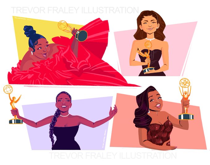 Feeling Scene II #Emmys2022 @lizzo @thesherylralph @Zendaya @quintabrunson twitter.com/illustrevor/st…