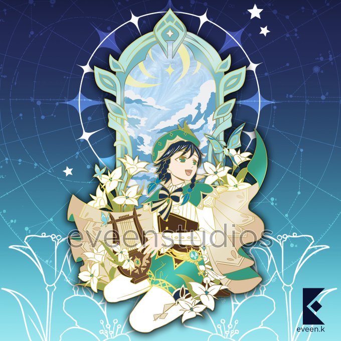 #PIN #DESIGN DROP, retweets appreciated!! ❤ This is going to be the biggest pin on pin I've ever made! More details below! Drop date: May 7 at 12pm EST. eveenstudios.bigcartel.com #venti #enamelpin #genshinimpactfanart #ventifanart #原神 #genshinimpact #fanart