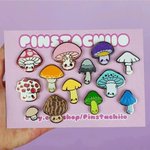 All 13 mushroom pins on the one backing card! I love this set 🌈 What is your favourite mushroom? #digitalart #enamelpin #kawaii #cuteart #amanita