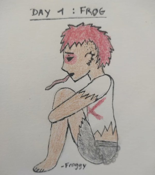 ENBY(AN)KTOBER DAY 1 : FROG J'ai profitax de l'occaz pour redessiner un·e OC que j'aime beaucoup ! C'est un·e mutant·e mi humain·e, mi "grenouille-tomate" qui déteste l'humanité et a un rapport conflictuel avec ellui-même. Je pense l'appeler Elean!🐸❤️🖤 #inktober2022 #nb #enby