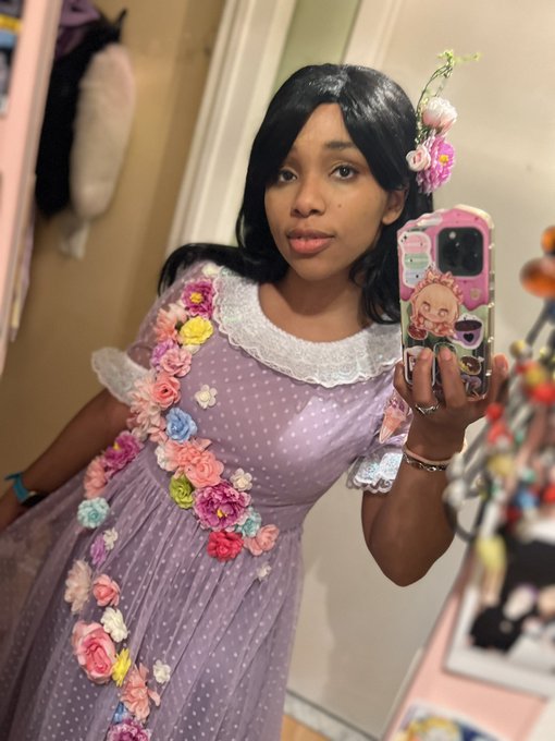 I’ve been working on my own Isabella dress since the one I ordered never came/went out of stock. Sooo many flowers and more to add to the bottom. I’ve been working on it to long idk if it even looks good 😂 #isabellamadrigal #encanto #disney #disneyprincesscosplay