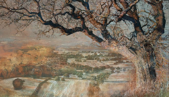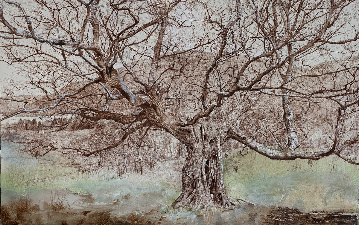 Detail of my painting 'Stumble field oak' 130 x 140cm egg tempera, watercolour, gesso #nature #landscape #englishcountryside #drawing #contemporaryart #trees #veterantrees #QGC #sothebys