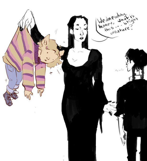 Morticia and her daughter in law #wednesdaynetflix #wednesdayaddams #enid #wenclair #fanart #digitalpainting #artistsontwitter