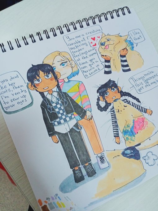 She had to put nine stitches... (Give me some wenclair ideas. Gay ideas! I'm starting running out of mine xdd) #wednesdaynetflix #wenclair #enid #wenclairfanart #fanart #digitalpainting #artistsontwitter