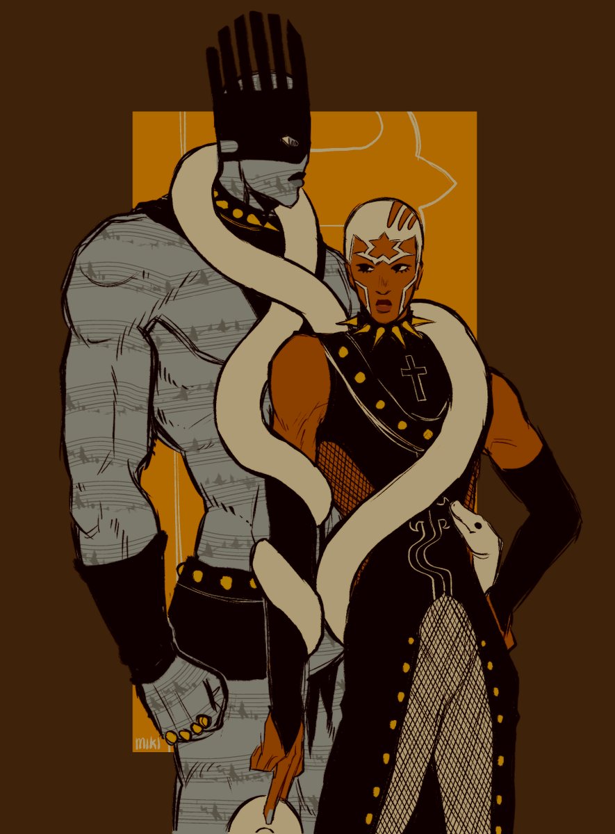 I never noticed how punky White Snake's design is. Perhaps Enrico is a secret punk lover? Cosmic level slay... #enricopucci #whitesnake #StoneOcean #JJBA