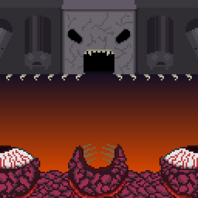 Daily No. 441: Unstoppable Force meets Unstoppable Force. Truly a legendary encounter. Made for today’s @Pixel_Dailies theme: #LivingWall. Made using #aseprite. #pixelart #ドット絵 #pixel_dailies #Terraria #EnterTheGungeon