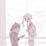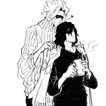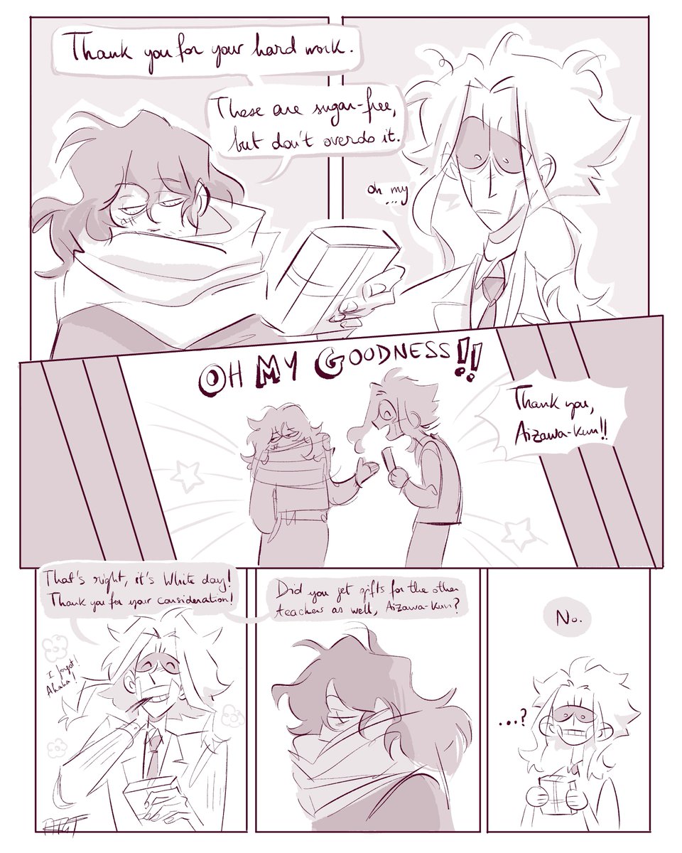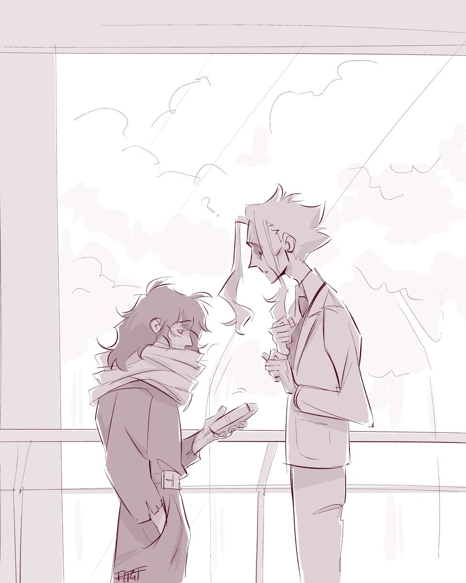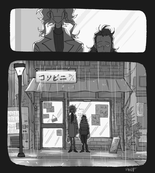 im late aaaaa dfsjdhfs here's day 2 of #erasermightweek <3 rain and stranded together! yagi gave their umbrella to an eldery lady and aizawa won't let him walk in the rain :')